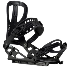 The Arc Pro and Surge Pro are equiped with the Full Pebax Plastic Pillow Line straps. These straps are lighter and thinner than the normal Pillow Line straps. These straps have been 3D-shaped out of a single piece of plastic. This production method makes them extremely durable and more flexible in order to enclose any boot perfectly. The heel riser has been upgraded to the user friendly Whammy Bar. This built in heelriser has small lever pointing out the side, which you can flip with a standard touring pole (with basket). Spark R&D bindings use Burton buckles for all their bindings.